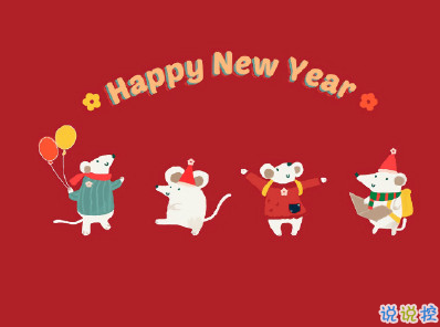 11.鼠年到来踌躇满。志向高远可比天。新年到来运气变。霉运远离好运伴。万事顺利赚大钱。家庭美满笑开颜。健康平安在身边。幸福生活到永远。祝鼠年心想事成。快乐无边!